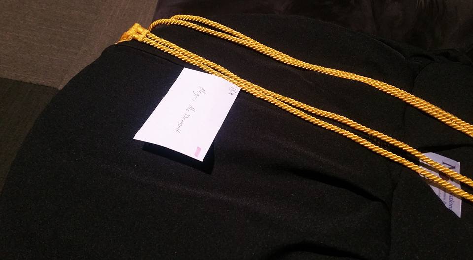I made it through school. I graduated from high school and finished college with a Bachelor’s of Science in Multimedia and Animation with cum laude honors. The black robe up top with the yellow cords. I had to ask the girl handing them out, because I had no idea that accomplishment until that moment. I was very moved after all the hardships truly paid off. I didn’t give up. I let go a lot of times, but never gave up. I spent several years throughout school to explore options from screen printing to folding brochures and publishing. I really liked publishing.