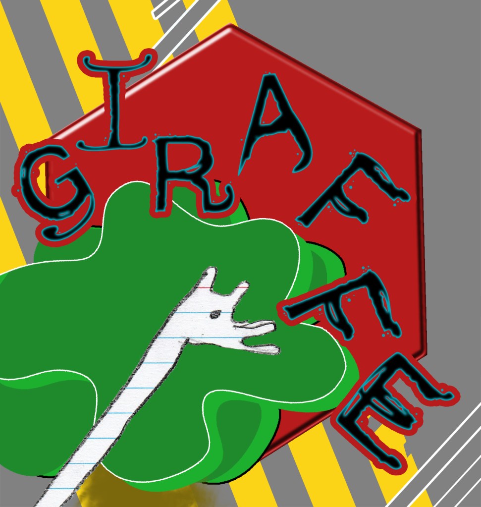 At the making of the giraffe art, my niece who was about seven years old had the job of doodling. I used her artwork as part of my design that eventually was put into a prototype magazine that I designed, edited, and printed called Expressive Graphics Journal.